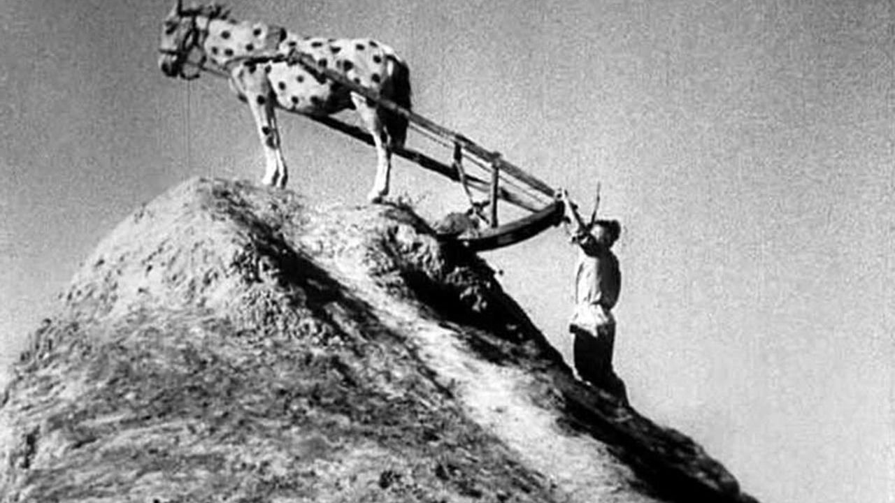 A hapless man undergoes misadventures with avaricious clergy, a tired horse, and a walking granary on his road to collectivized happiness.